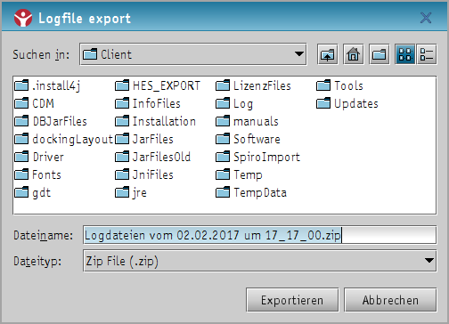 Bestätigen Sie das Speichern der Log-Dateien über den Button "Exportieren".