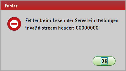 "Fehler beim Lesen der Servereinstellungen - invalid stream header: 00000000"