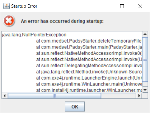 Sie erhalten beim Start von PadsyClient folgende Fehlermeldung: